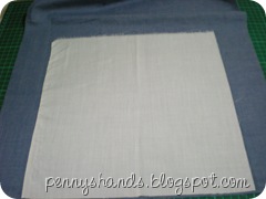 Place a white fabric, right sides together where the circle is. (Remember, the circle is drawn on the wrong side.) Pin the fabric in place and stitch the circle. I stitched 0.5cm away from the circle I drew.